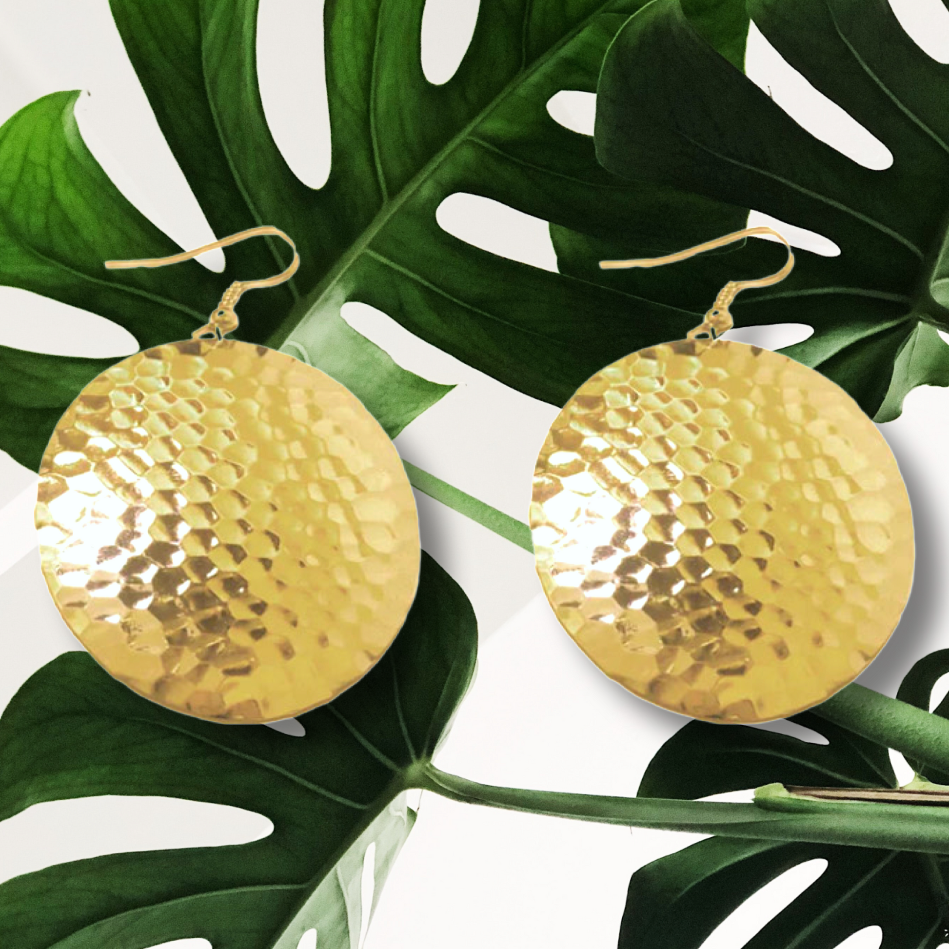 The Urban Charm circle domed dangle earrings feature a hammered textured and then are dipped in either 24k or silver. The are lightweight and can be worn with just about any outfit.
